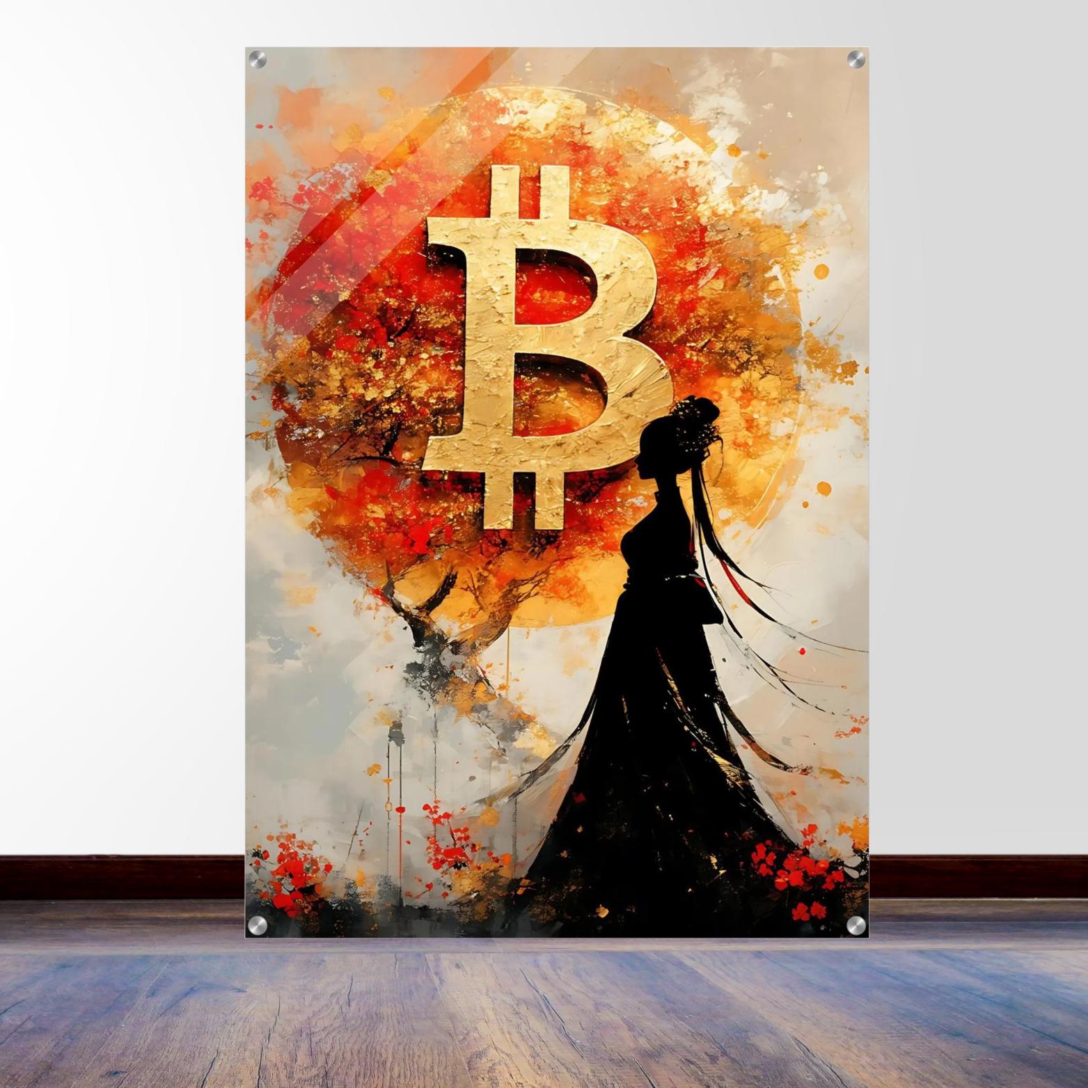 Enrich your space with this stunning Bitcoin Tree Acrylic Wall Art—a 70x100cm glossy print where a golden tree silhouette, infused with the BTC symbol, blooms in vibrant orange and gold tones. Printed on 4mm durable acrylic, this vertical piece merges blockchain prosperity with nature’s elegance—ideal as modern gold acrylic wall decor for eco-friendly homes, tranquil offices, or a unique gift for Bitcoin nature enthusiasts. Product Details Size: 70x100 cm / 28x40″ vertical—oversized Bitcoin tree art for a serene, gallery-like statement.