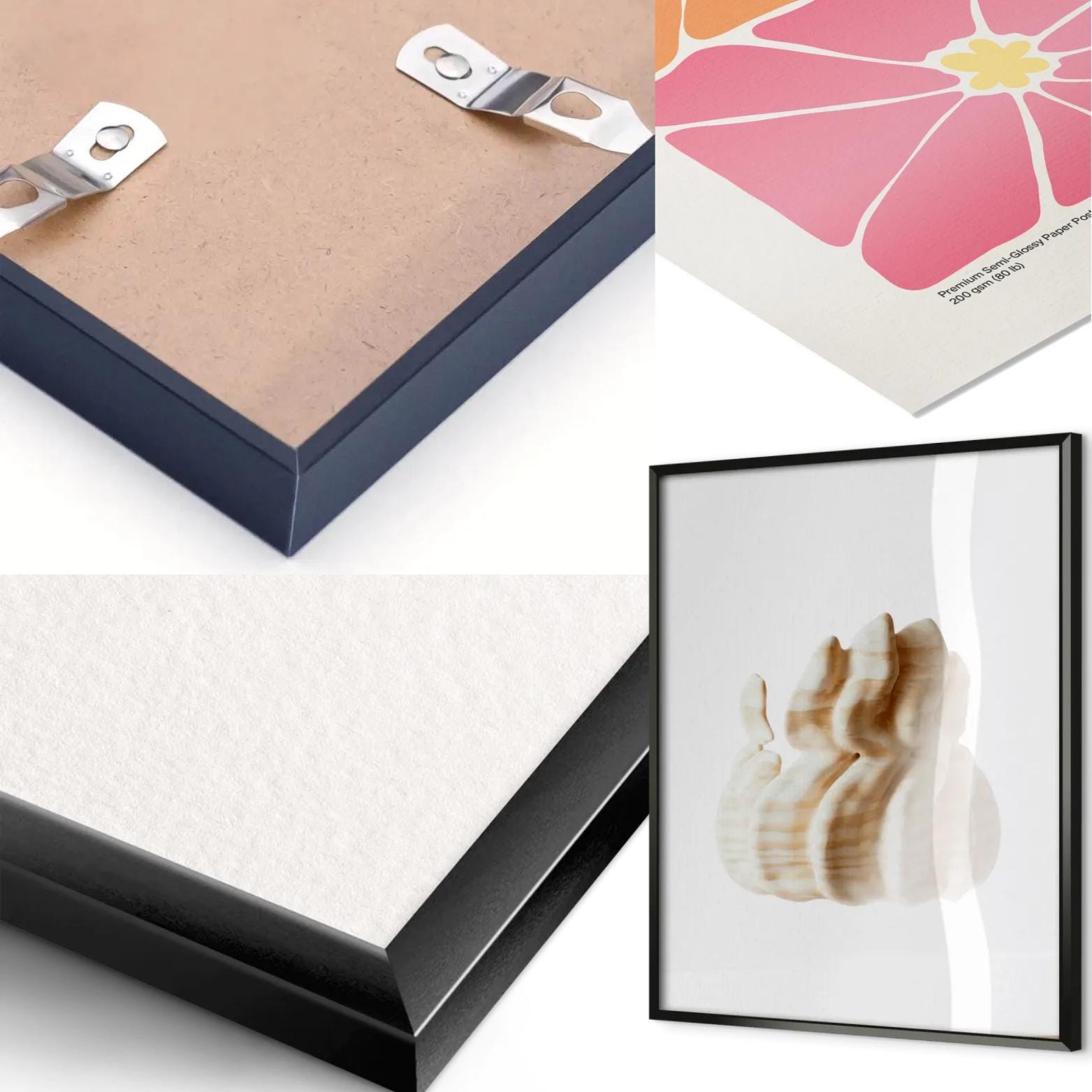 Product Details: Our sleek aluminum frame, finished in polished black (20mm thick, 10mm wide), pairs flawlessly with premium semi-glossy paper (200 gsm, 0.22mm), enhancing colors with a subtle shine and resisting fading from light or moisture.