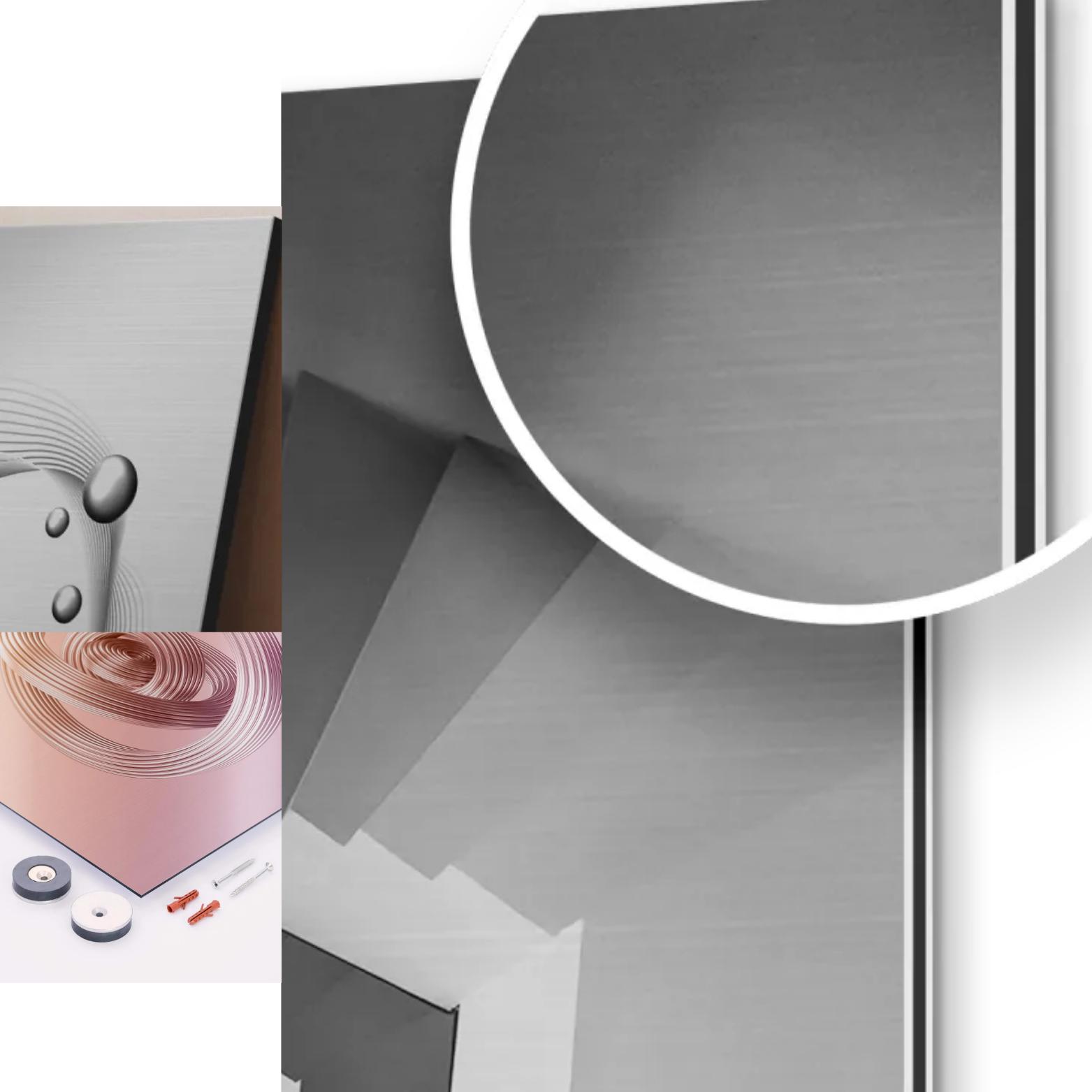 • Material: Aluminum DIBOND® — strong yet lightweight with two white aluminum layers and a black polyethylene core, ideal for large artwork.