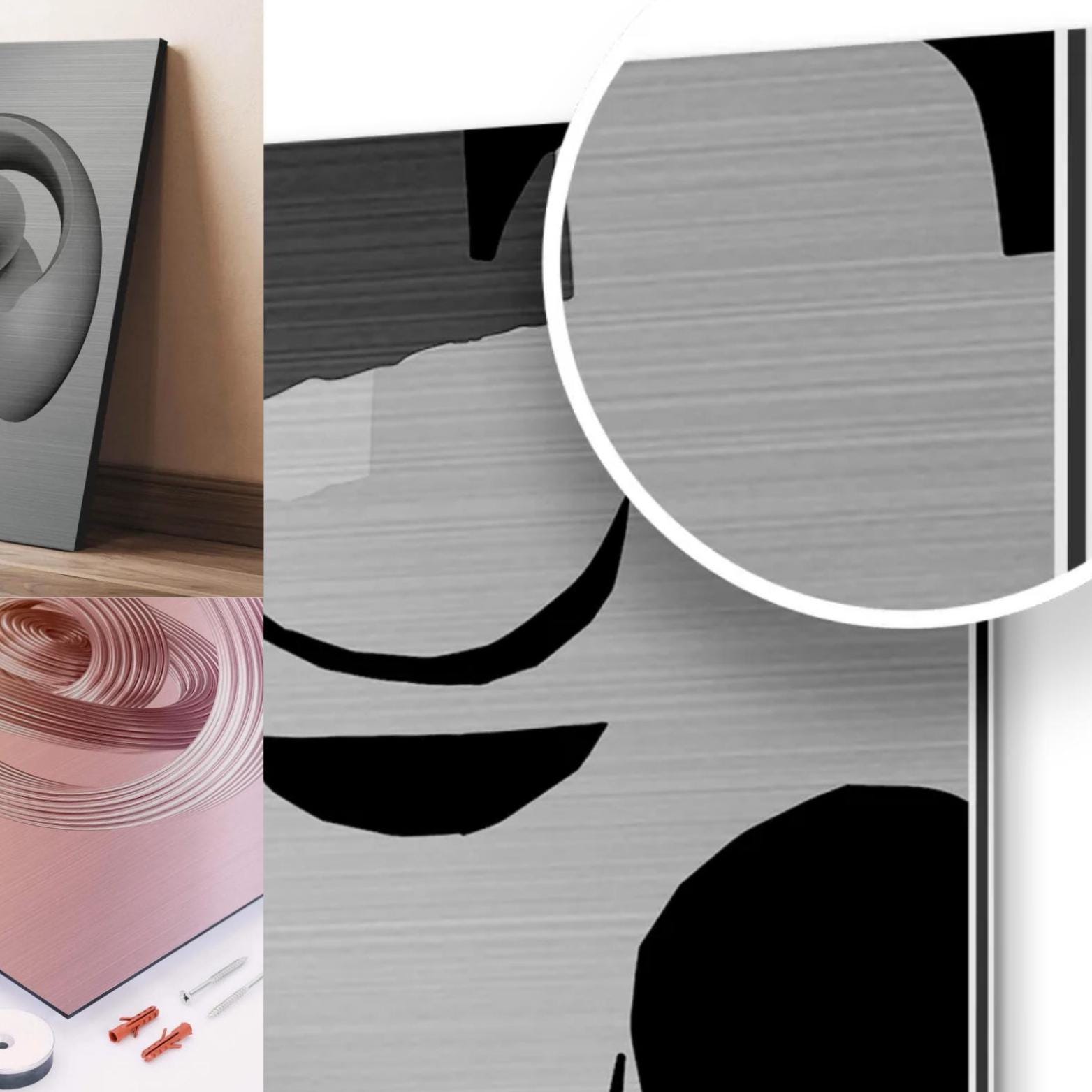 • Material: Brushed silver Aluminum DIBOND® — lightweight, rigid, and highly durable